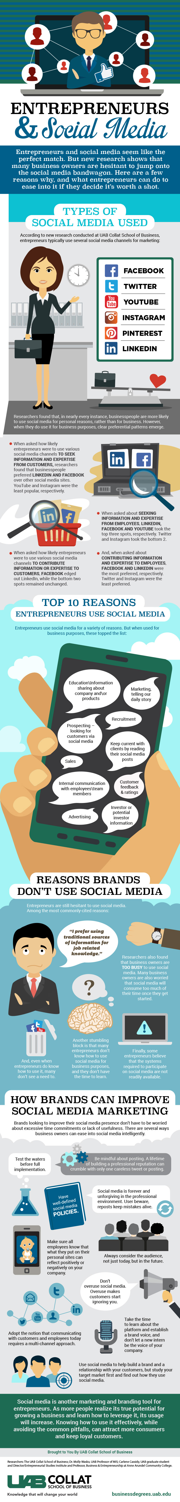 According to research by Dr. Molly Wasko and Carlene Cassidy of The UAB Collat School of Business, many business owners are hesitant to jump onto the social media bandwagon. As you work toward your online business degree, you’ll come to understand the overall importance of social networks to business success. Our latest infographic sheds light on why entrepreneurs hesitate and how they can overcome their fears by easing into Facebook, Twitter and other social worlds: