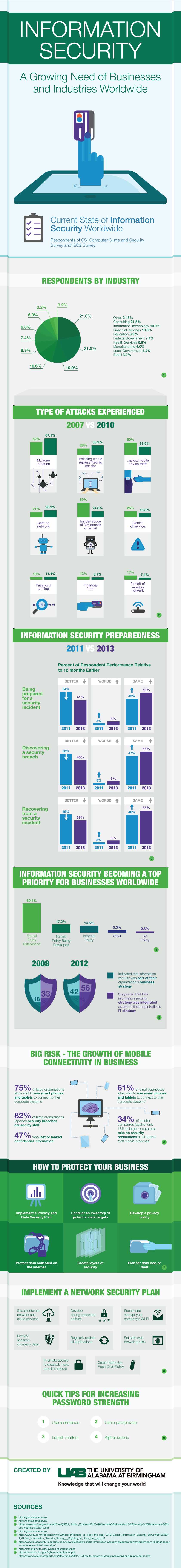 To learn more about information security and businesses, take a look below at the infographic created by the University of Alabama at Birmingham.